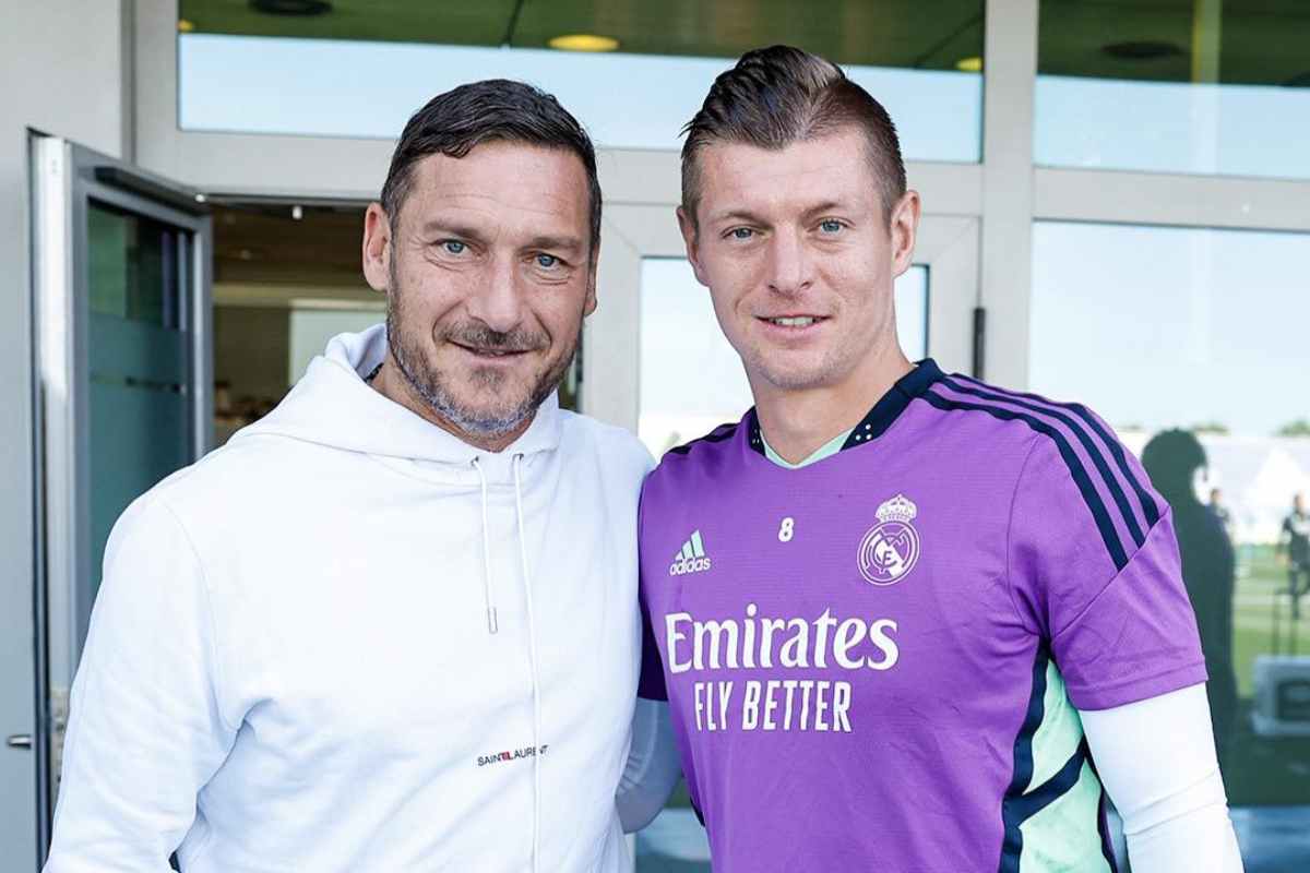 All’interno del centro tecnico di Valdebebas, Totti si è fatto diverse foto con tutti i giocatori più rappresentativi della rosa dei Blancos. Da Modric a Kroos, passando per il vecchio compagno ai tempi della Roma, Rudiger, senza dimenticare il bomber Karim Benzema.