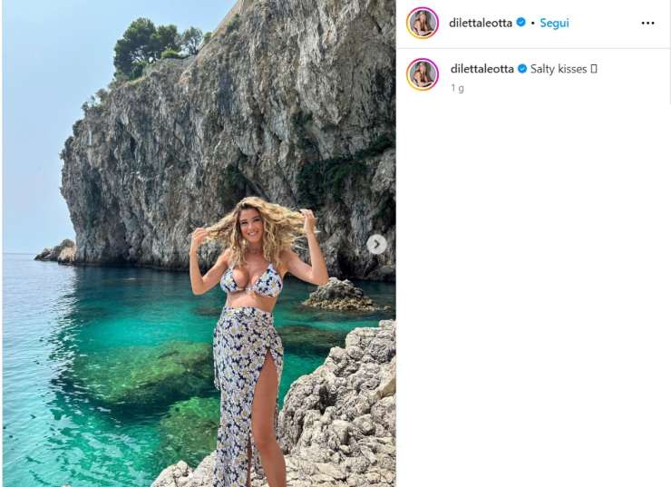 Diletta Leotta risulta molto attiva anche su Instagram. Sul noto social, la Leotta è seguita da un numero incredibile di followers. Infatti, sono oltre 8,7 milioni di utenti che rappresentano la fanbase della Leotta. Gli scatti che vedono la Leotta protagonista sono sempre molto apprezzati dai fan che non perdono mai l’occasione di rilasciare commenti o “mi piace”. La stessa cosa, ad esempio, è avvenuta in occasione dell’ultimo scatto pubblicato dalla siciliana sul proprio feed. La Leotta appare in costume da bagno blu sul quale campeggiano tante margherite. Il bikini mette in risalto il lato A ed il pareo esalta la pancia della Leotta che regala un sorriso a chi osserva la foto.
