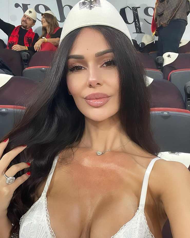 Quindi, per il match che avvicina l‘Albania a una storica qualificazione agli Europei, che saranno ospitati in Germania, proprio non poteva mancare la prorompente modella, star dei social network nonché l’albanese più amata e ammirata al mondo.